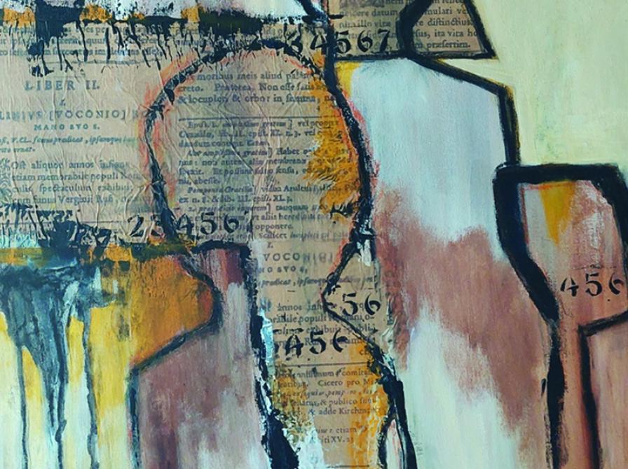 Jeg tager tit et foto, så jeg kan fastholde et motiv - en tanke. Mine billeder er udført i akryl med modeleringspasta eller marmorgranulat for at få et rustikt udtryk – croquis stregen synes jeg er ret spændende.
