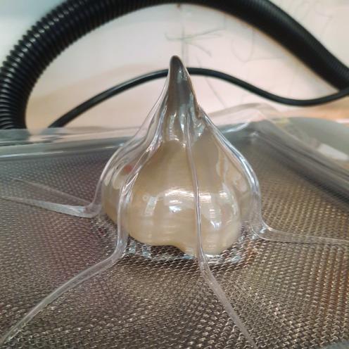 6. Sænk rammen med det varme plastik ned over figuren og tænd støvsugeren.